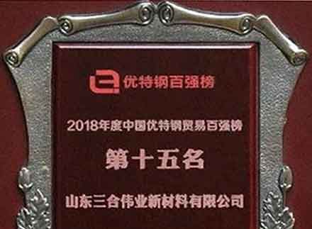 三合偉業(yè)獲評2018年度中國優(yōu)特鋼貿(mào)易百強榜 第十五名