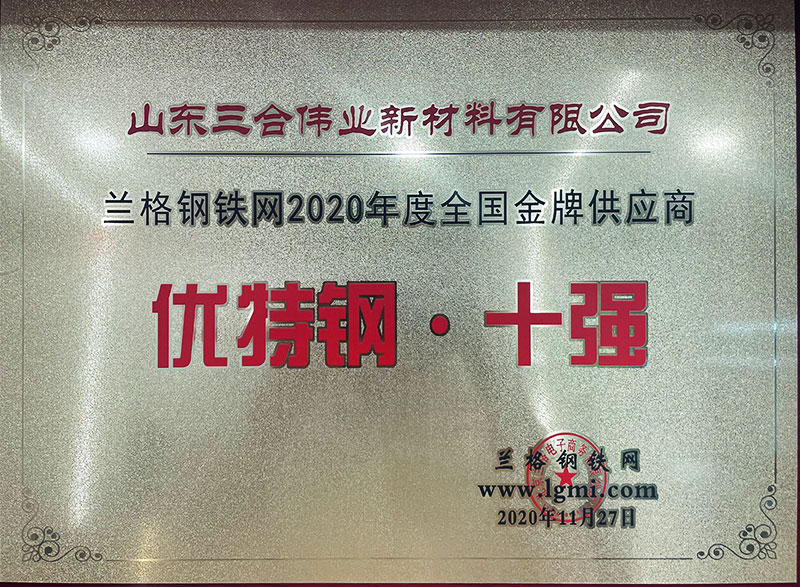 三合偉業(yè)獲評蘭格鋼鐵網(wǎng)2020年度全國金牌供應(yīng)商
