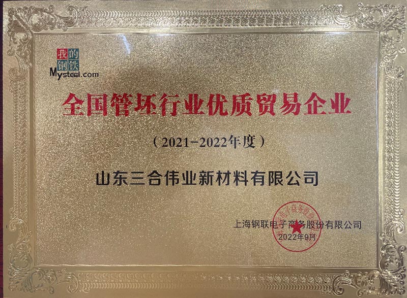 公司獲評管坯行業(yè)優(yōu)質(zhì)貿(mào)易企業(yè)稱號